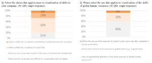 In this survey, only 28% of companies responded that “visualization of skills” is already in progress. Furthermore, if limited to “visualization of the skills of global talent” it falls to 8%. The skills required of global talent are diverse, including not only English ability, but also cross-cultural understanding and management skills. In order for Japanese companies to promote job-type employment on the premise of global business development, “visualization of skills” is considered to be an urgent issue.