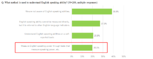 As mentioned earlier, “English speaking ability” is a very important skill in the practical global business scenes. On the other hand, only twenty percent of companies are quantitatively measuring this skill (e.g., using the speaking test). It is also part of the “visualization of skills” required for job-type employment, and the measurement of English conversation skill is expected to become increasingly important in the future