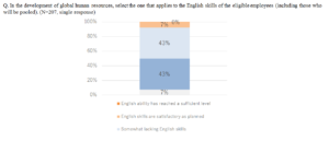 English ability is an indispensable skill in developing business globally. On the other hand, more than 90% of the respondents said that “English ability is somewhat/considerably insufficient” for employees who will be global talent in the future. Although they are aware of the necessity, this suggests that they have not taken necessary actions to develop appropriate human resources.