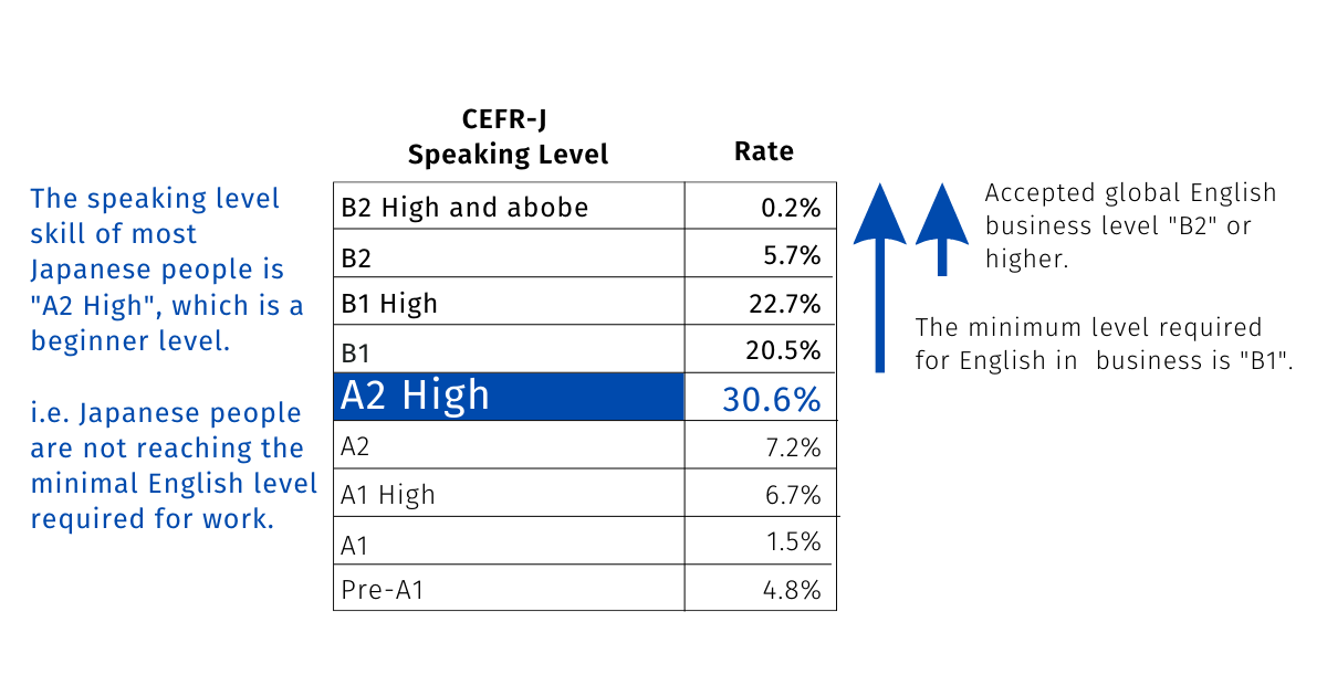 Result 1: The level of speaking skill for most Japanese people is “A2 High”, which is considered a beginner level.
