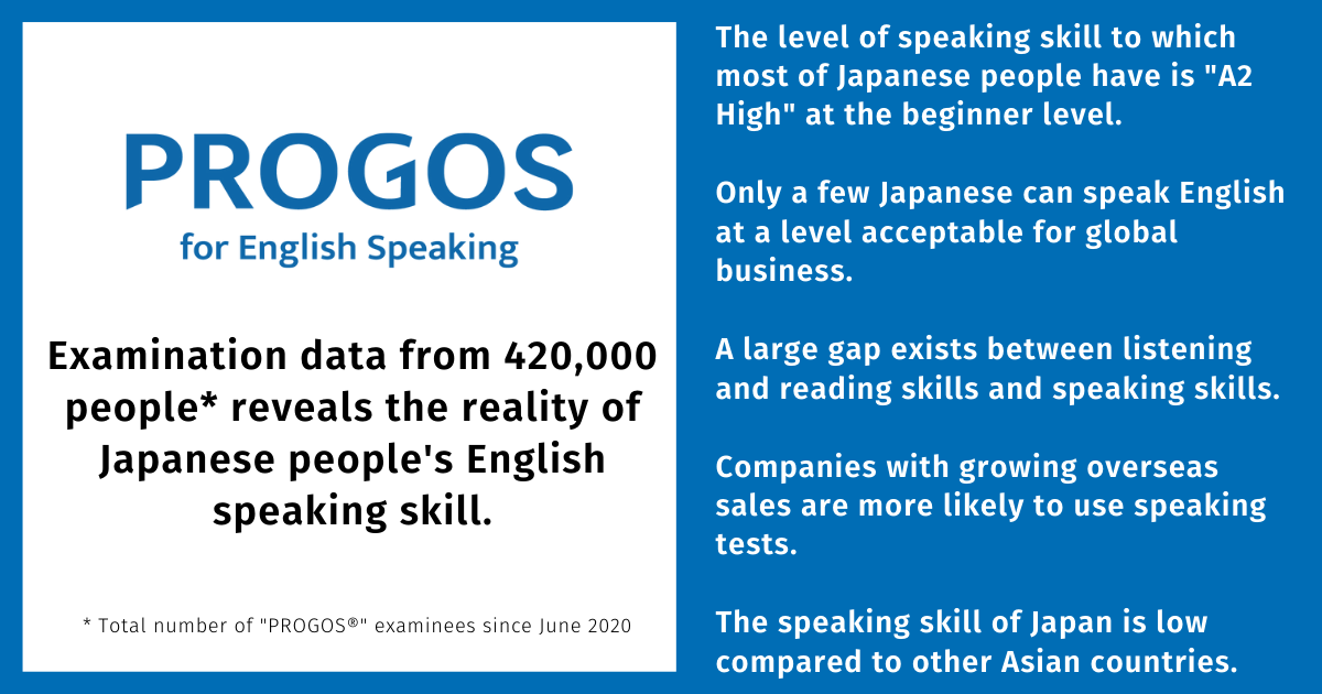PROGOS Inc. (hereafter, “PROGOS”), the subsidiary of RareJob, Inc. (hereafter, “RareJob”), which helps people visualize and improve their skills as an “AI assessment company”, announced the results of a survey on the English speaking skill of Japanese people, utilizing the data from PROGOS® AI business speaking test, which celebrated its third anniversary since its launch in June 2020.