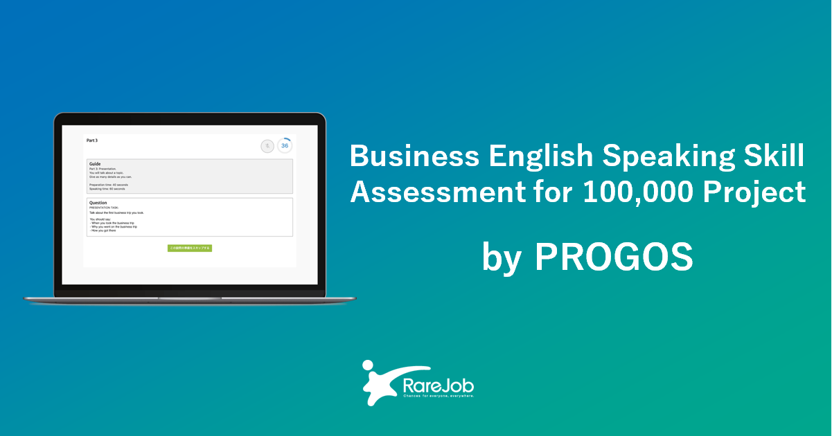 RareJob, Inc. (hereinafter “RareJob”), which utilizes data related human resources and develop global talents, launches Business English Speaking Skill Assessment for 100,000 Project by PROGOS for corporations, universities, and other organizations on December 8, 2020.
