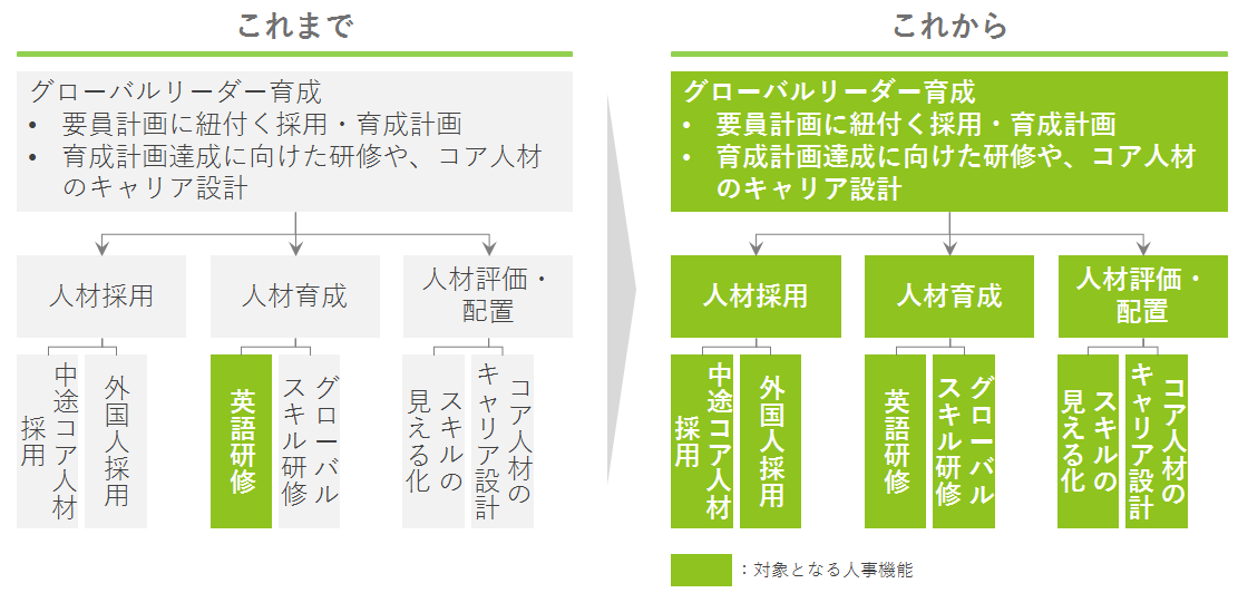 これからのグローバルビジネスにおいて、コミュニケーションの急速なオンライン化や、ジョブ型雇用のように、個人のスキルをベースとしたマネジメント、データやテクノロジーを駆使したスピードある意思決定など、より多様なスキルが求められています。