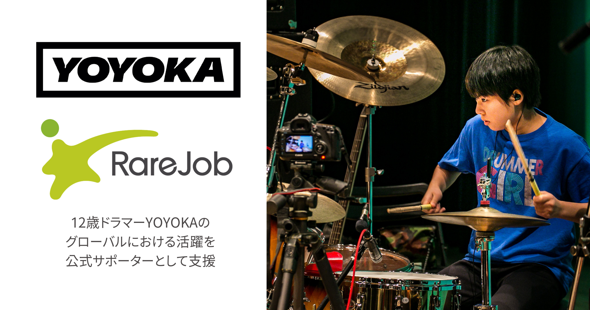 スキルの可視化と向上を支援する“AIアセスメントカンパニー”の株式会社レアジョブ(以下、レアジョブ)は、世界が注目する北海道在住の12歳のドラマーYOYOKA(よよか)氏の公式サポーターとして、グローバルにおける活躍を支援することとなりました。