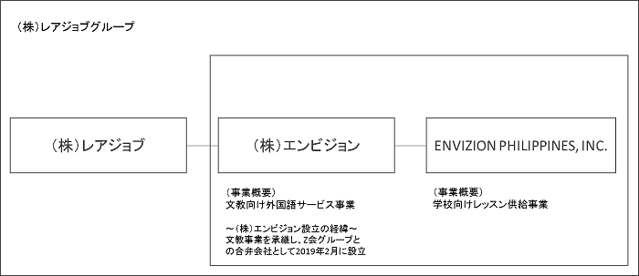 2016年9月、レアジョブは学校向けのレッスンを行う子会社としてENVIZION PHILIPPINES, INC.(以下、ENVIZION PH)を設立しました。ENVIZION PHでは自社拠点に講師を集め、一度に大勢の児童生徒に向けてレッスンを行う一斉授業に対応しています。現在は文教向けサービス事業子会社である株式会社エンビジョンのグループ会社として、主に日本の小中高校生を対象にレッスンを行っています。