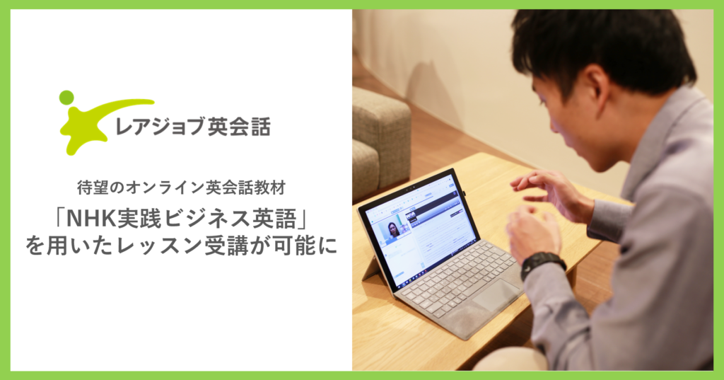 人にまつわるデータを活用し、グローバルに活躍する人々を生み出す株式会社レアジョブ(以下、レアジョブ)は、株式会社NHKエデュケーショナル(以下、NHKエデュケーショナル)の協力のもと、オンライン英会話サービス「レアジョブ英会話」にて、NHK語学番組「NHK実践ビジネス英語」と連動したレッスンを提供開始いたします。