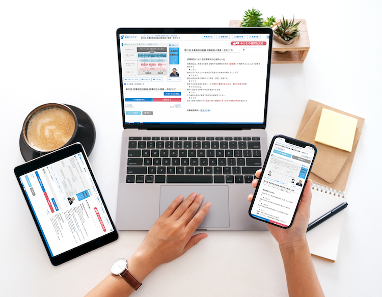 「資格スクエア」は、”合格するための正しい学習”をシステム化した法律系難関資格のオンライン学習サービスです。多くの難関試験合格者から学習法をヒアリングし、「合格するためにはどのように学習すべきか」の最適解を見出し、脳科学の要素を加えカリキュラム化。また、講義や教材の提供にとどまらず、最適なデジタル学習環境とサポートによって”正しい学習”の実践を支えることで、多くの人が合格を掴み、活躍できるように支援します。