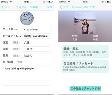 Chattyは、24時間いつでもどこでも、リアルタイムに先生とチャットで英会話ができるサービスです。ユーザー層は、女性が7割、男性が3割、英語レベルとしては初級者の方が中心と、当社が運営するレアジョブ英会話(男性6割、中上級者レベルの方中心)と異なる層の方を中心にご利用いただいています。「英語が苦手でもこれなら簡単」という声も多く、スタンプと簡単な単語によるチャット会話を通じて、初級者の方でも気軽に英語を楽しむ体験をしていただいております。また、App storeの教育アプリ特集やベスト新着Appでも3度取り上げられ、新しい英語コミュニケーションを体験できるサービスとして注目されています。この度、英語初級者の女性をターゲットに、「毎日気軽に、簡単に」「先生と英語でおしゃべり」を楽しんでいただけるよう、機能を拡充いたしました。