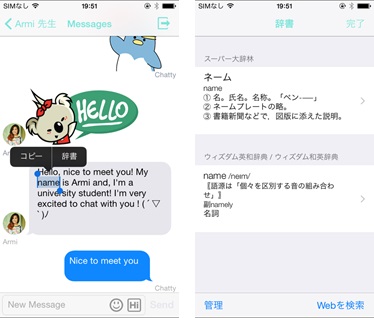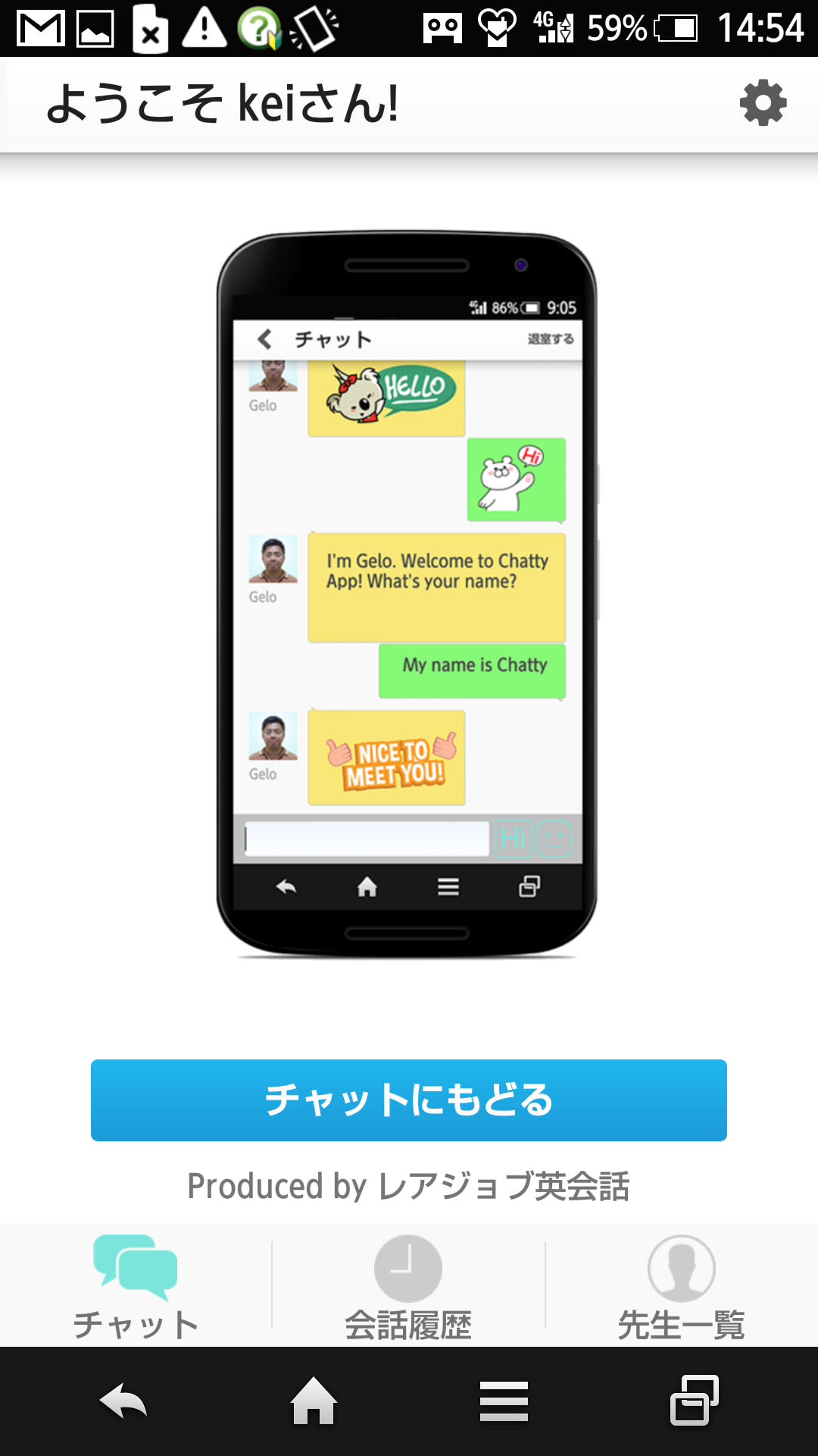 チャットを通して英語を楽しく学んでいただけるサービスです。chatty image英会話を学びたいユーザーとレアジョブの先生をマッチングし、スタンプや英文のテンプレート、テキストを使って、24時間いつでもどこでも利用出来ます。