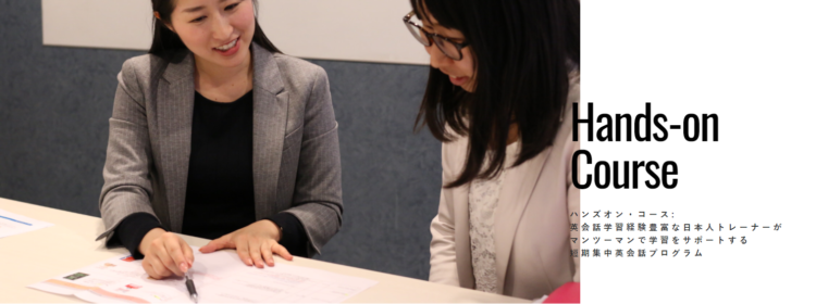 今回、提供を開始する「ハンズオン」は、英会話学習経験豊富な日本人トレーナーがマンツーマンで学習をサポートする、ビジネスパーソン向けの短期集中ビジネス英会話プログラムです。