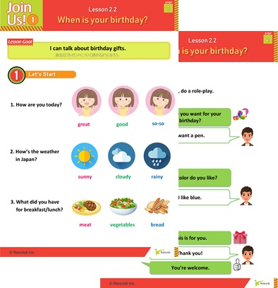 英会話サービス事業を運営する株式会社レアジョブは、文部科学省による新学習指導要領に対応した、学校向けサービスのオンライン英会話レッスン用新教材『Join Us!』(小学校向け)の提供を開始し、12月より『Compass』(中学校向け)の提供開始も予定しています。