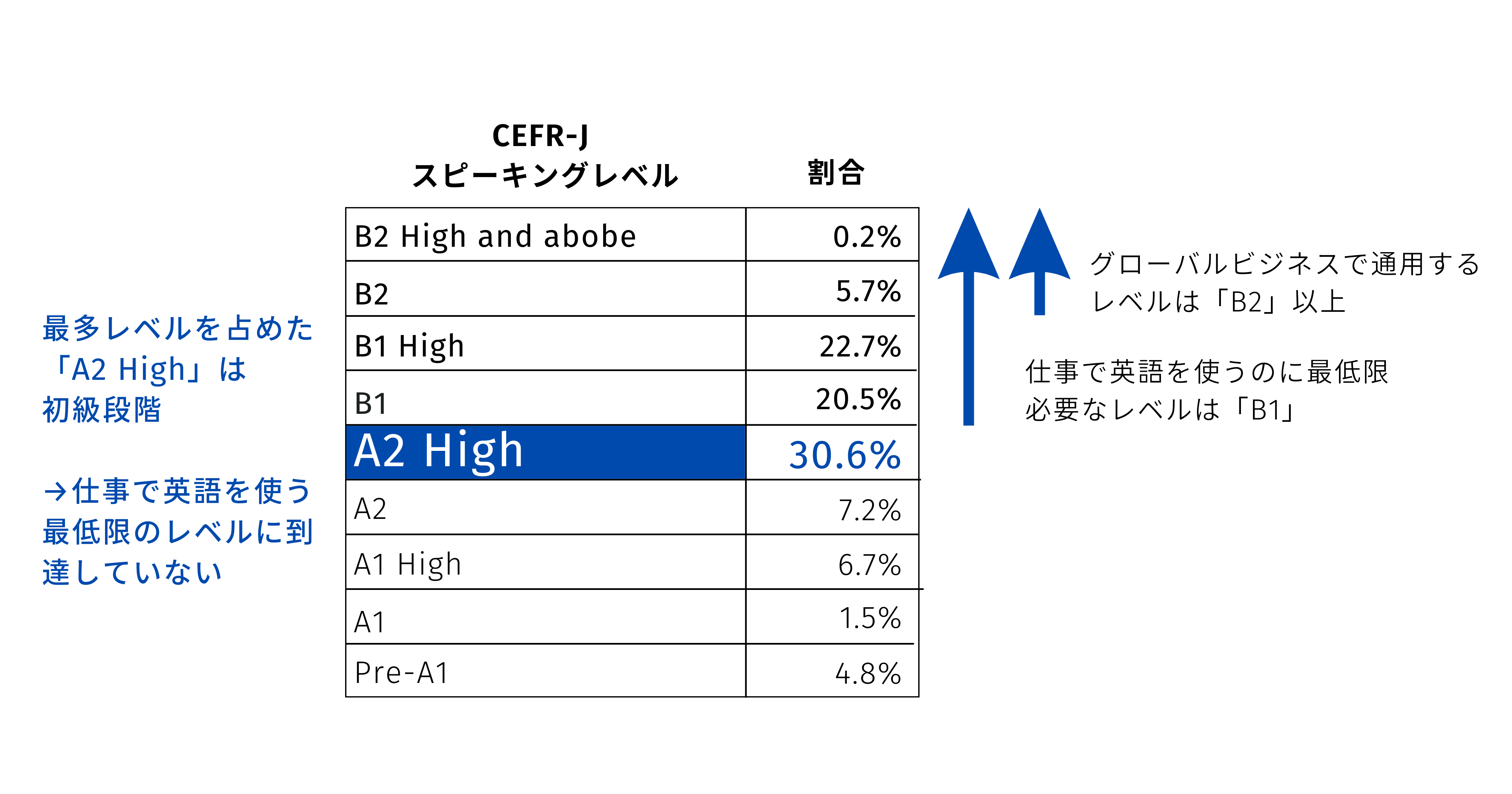 結果1. 日本人のスピーキング力 最多レベルは初級段階の「A2 High」