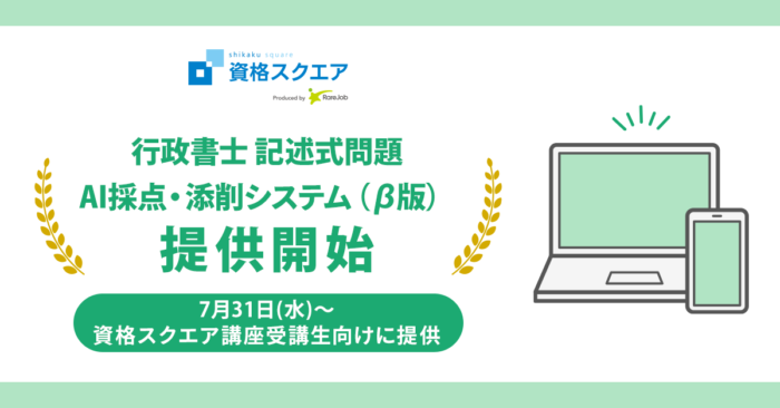 EdTechカンパニーの株式会社レアジョブは、オンライン予備校「資格スクエア」の行政書士講座より、2024年7月31日に「記述式問題 AI採点・添削システム」のβ版提供を開始しました。