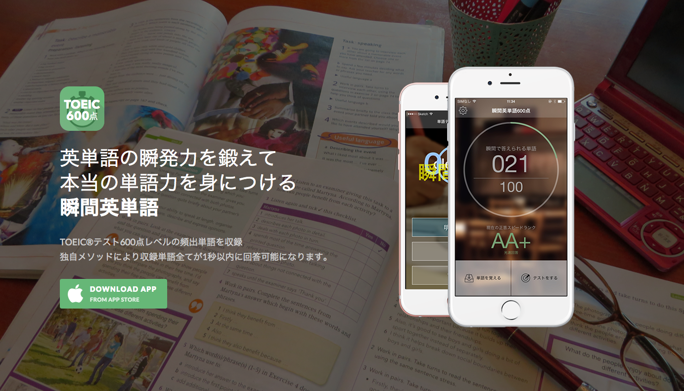 オンライン英会話サービス事業を運営する株式会社レアジョブ(本社:東京都渋谷区、社長:中村 岳、以下「レアジョブ」)は、「TOEIC®テスト600点 1秒で思い出す瞬間英単語(以下、瞬間英単語)」をApp Storeにて提供開始いたします。
