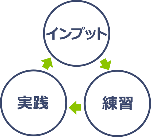 レアジョブでは、ミッションである「日本人1,000万人を英語が話せるようにする」を達成するために、英語習得の効果的な学習サイクルとして、『インプット』『練習』『実践』の3つの要素から成るラーニングサイクルを繰り返すことを提唱しています。「瞬間英単語」は『インプット』の機会を増やすことを目的に提供しております。