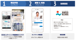 簡単な接客英語を動画と発話トレーニングで学ぶことのできる法人向けeラーニング学習教材です。